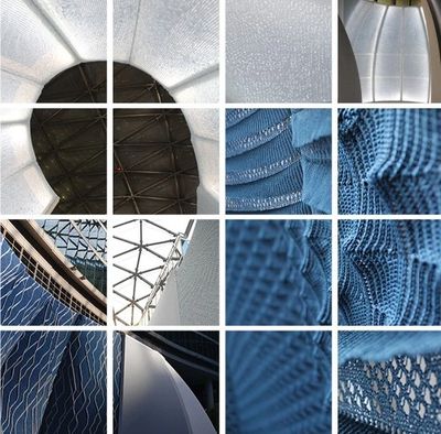 The SenseKnit pavilion is divided into four thematic areas that offer different scenarios of comfort and user experiences that cater to all senses: acoustic, climatic, visual and structural. Different types of fabrics were produced specifically for each area, featuring special yarns depending on the function, for example light-sensitive fibers or hollow-core ones for noise absorption.